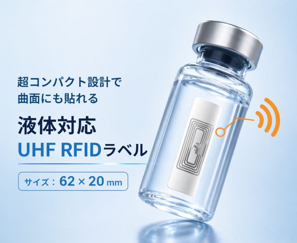 これまで困難だった液体入り医薬品のRFID管理を可能にする、高性能UHF RFIDラベルです。