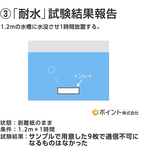 IP7相当の防水性能も持つ0.4mm厚の薄型タグ(ラベルタイプ)です。