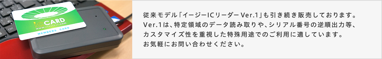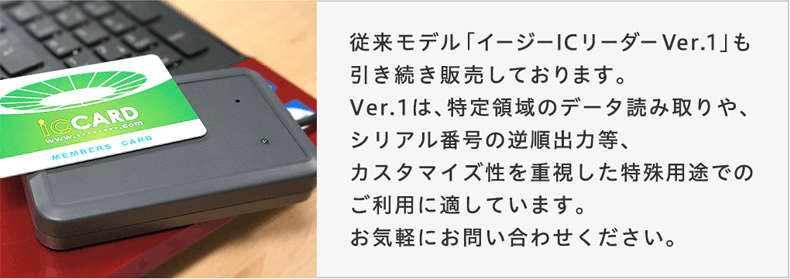 - 既存システムとの互換性・スムーズな置き換えが可能。IDm/UID対応システムはドライバ導入で後々のトラブルが起こりがちですが、「イージーICリーダー」なら煩雑な設定やインストールなしで、簡単にICカードを読み取れます。